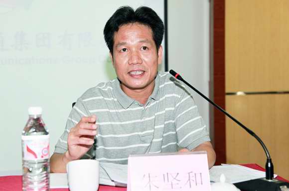 圖為集團(tuán)公司董事長(zhǎng)、黨委書記朱堅(jiān)和作重要講話