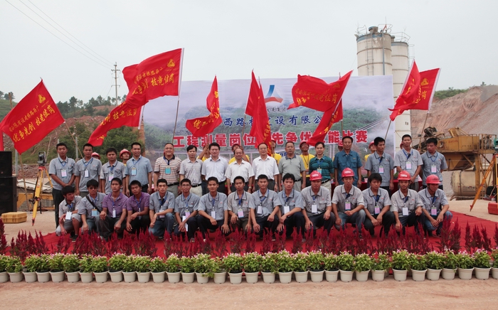 9月2日,廣西路橋建設(shè)有限公司在六欽1標舉辦工程測量崗位創(chuàng)先爭優(yōu)技能比賽。廣西交通工會、海員工會主席黎建華,自治區(qū)交通運輸廳直屬機關(guān)黨委專職副書記羅華芝,集團,公司黨委副書記張友坐等領(lǐng)導出席比賽開幕儀式并講話。