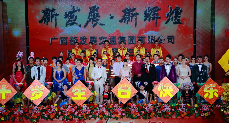 3月18日,“新發(fā)展?新輝煌”集團(tuán)公司十周年慶典文藝匯演在廣西交通職業(yè)技術(shù)學(xué)院大禮堂舉行。自治區(qū)總工會(huì)、區(qū)直機(jī)關(guān)工委、國(guó)土廳國(guó)土規(guī)劃院等區(qū)直有關(guān)部門,自治區(qū)交通運(yùn)輸廳各部門、直屬各單位,廣西交投集團(tuán)、廣西建工集團(tuán)、廣西建筑業(yè)聯(lián)合會(huì)、各大銀行等有關(guān)單位的領(lǐng)導(dǎo),以及新發(fā)展交通集團(tuán)職工代表1000多人齊聚一堂,共同慶祝集團(tuán)公司成立十周年。
