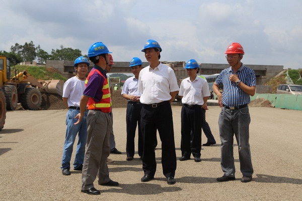 8月7日上午,自治區(qū)國(guó)資委主任、黨委書記管躍慶一行來到集團(tuán)公司承建的沿海高速改擴(kuò)建項(xiàng)目工地,在那馬北互通立交工地現(xiàn)場(chǎng),全面了解項(xiàng)目投資、業(yè)績(jī)考核完成情況和一期工程及后續(xù)改擴(kuò)建工程推進(jìn)情況,察看沿海高速改擴(kuò)建一期工程瀝青路面施工進(jìn)展。管躍慶要求,要認(rèn)真貫徹中央和自治區(qū)黨委、政府穩(wěn)增長(zhǎng)、促改革、調(diào)結(jié)構(gòu)、惠民生的決策部署,主動(dòng)作為,扎實(shí)抓好項(xiàng)目管理、建設(shè)質(zhì)量和安全生產(chǎn),為我區(qū)經(jīng)濟(jì)社會(huì)發(fā)展和實(shí)現(xiàn)“兩個(gè)建成”作出積極貢獻(xiàn)。集團(tuán)公司總經(jīng)理李定倫陪同調(diào)研。