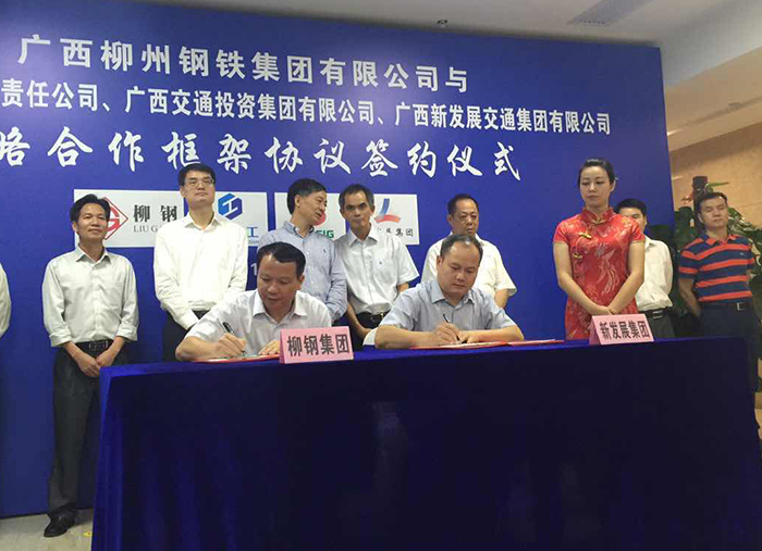 朱堅(jiān)和董事長在講話中指出,廣西新發(fā)展交通集團(tuán)是區(qū)內(nèi)資質(zhì)齊全、產(chǎn)業(yè)鏈完備的大型交通基礎(chǔ)設(shè)施企業(yè),主要從事公路、橋梁、港口、碼頭、航道、隧道、市政等基礎(chǔ)設(shè)施的投資建設(shè)、勘察設(shè)計(jì)、施工等業(yè)務(wù)。廣西新發(fā)展交通集團(tuán)與柳鋼具有廣泛的共同利益和良好的合作基礎(chǔ),在前期的合作中也取得了一系列的合作成果,希望雙方今后積極發(fā)揮自身優(yōu)勢,強(qiáng)強(qiáng)聯(lián)合、攜手共進(jìn),打造利益共同體、責(zé)任共同體、命運(yùn)共同體,為促進(jìn)全區(qū)經(jīng)濟(jì)穩(wěn)增長作出新的更大貢獻(xiàn)。