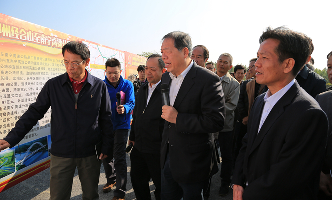 在柳州經(jīng)合山至南寧高速公路(簡稱新柳南高速公路)開工現(xiàn)場會主會場上,集團公司黨委書記、董事長朱堅和向自治區(qū)人民政府副主席陳剛、自治區(qū)交通運輸廳副廳長梁毅等與會領導介紹了新柳南高速公路項目情況,以及集團公司目前承建的自治區(qū)重大建設項目鐘山至來賓、來賓至巴馬、融水至河池等3個縣縣通高速公路項目建設情況,朱堅和表示,集團公司致力于成為自治區(qū)黨委、政府最可信賴的交通基礎設施投資運營力量,全力以赴完成各重大項目建設任務。