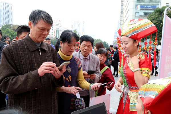 身著統(tǒng)一服裝,肩披綬帶、胸扣團(tuán)徽的ETC推廣青年突擊隊(duì)員向過往的行人宣傳ETC的相關(guān)知識(shí),耐心解答車主朋友們的疑問,并現(xiàn)場(chǎng)演示ETC八桂行卡的安裝過程,使廣大社區(qū)市民對(duì)ETC有了一個(gè)初步的認(rèn)識(shí)。6名身著靚麗壯族服飾瞬間吸引住了往來市民的眼光,紛紛前來咨詢業(yè)務(wù)。活動(dòng)期間,一卡通公司客服人員熱情地向社區(qū)居民發(fā)放了100張“桂民卡·體驗(yàn)卡”,亦有不少市民被桂民卡精美的版面設(shè)計(jì)和強(qiáng)大的互聯(lián)互通功能所吸引,紛紛在現(xiàn)場(chǎng)辦理購(gòu)卡及充值業(yè)務(wù)。票通公司客服人員則向社區(qū)居民推介了廣西人自己的道路客運(yùn)網(wǎng)絡(luò)售票平臺(tái)——“桂客行”,耐心地向市民解析平臺(tái)功能、覆蓋范圍等,并協(xié)助市民下載“桂客行”手機(jī)APP。