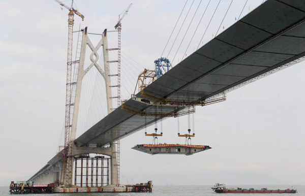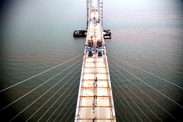 參建以來,該公司抽調(diào)了精干的技術(shù)管理團(tuán)隊(duì)常駐大橋施工現(xiàn)場,建立了高效的施工監(jiān)控組織機(jī)構(gòu)。技術(shù)人員在伶仃灣海面上連續(xù)晝夜備戰(zhàn),克服了海面風(fēng)浪大、海上工作平臺(tái)簡陋等重重困難,攻克了橋梁節(jié)段吊裝溫差影響大、拼裝就位控制影響因素多等技術(shù)難題,為港珠澳大橋的順利施工提供了強(qiáng)有力的技術(shù)支撐。