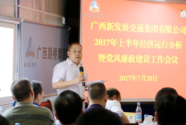 7月28日,集團公司在南寧市柳南高改快3標(biāo)項目召開2017年上半年經(jīng)濟運行分析暨黨風(fēng)廉政建設(shè)工作會議。會議傳達了交通運輸部2017年上半年工作總結(jié)和下半年工作會議精神,全區(qū)縣域經(jīng)濟發(fā)展大會暨年中工作會議精神以及自治區(qū)國資委2017年上半年經(jīng)濟運行分析、安全生產(chǎn)暨“1+N監(jiān)督閉環(huán)”工作推進會議精神,對集團公司上半年經(jīng)濟運行情況和黨風(fēng)廉政建設(shè)工作情況進行了認(rèn)真總結(jié)與分析,研究部署了下一階段工作任務(wù)。會議由集團公司黨委副書記、副董事長、總經(jīng)理唐咸秋主持。
