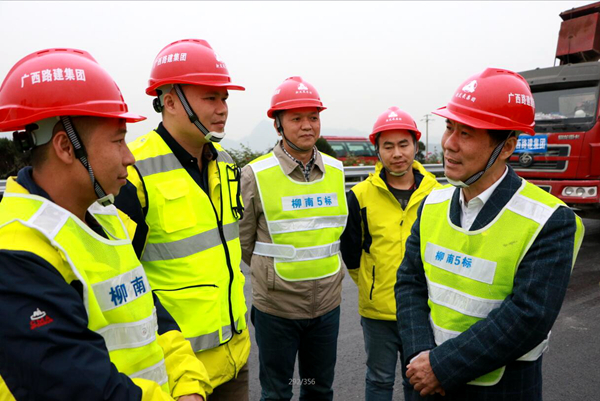 宣講會(huì)結(jié)束后,黃健教授深入柳州至南寧高速公路改擴(kuò)建5標(biāo)項(xiàng)目施工一線調(diào)研,與現(xiàn)場(chǎng)施工人員進(jìn)行親切交流,并就職工提出的問題一一進(jìn)行耐心解答。(廣西路建集團(tuán) 供稿)