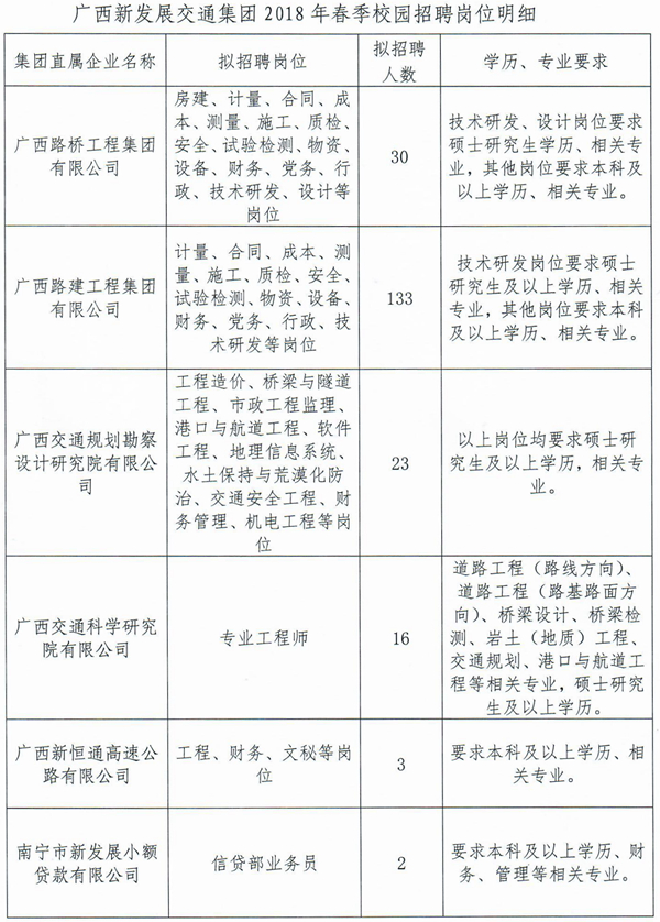 廣西新發(fā)展交通集團(tuán)2018年春季校園招聘宣講會時(shí)間及地點(diǎn)安排: