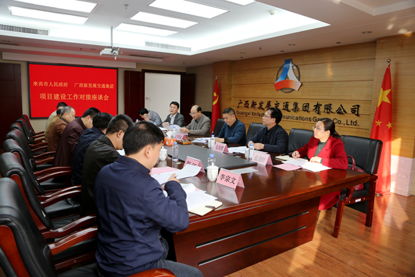 1月24日,來賓市人民政府副市長韋平率隊(duì)來訪,與集團(tuán)公司黨委副書記、副董事長、總經(jīng)理唐咸秋等領(lǐng)導(dǎo)進(jìn)行高速公路及路網(wǎng)建設(shè)項(xiàng)目工作對(duì)接。