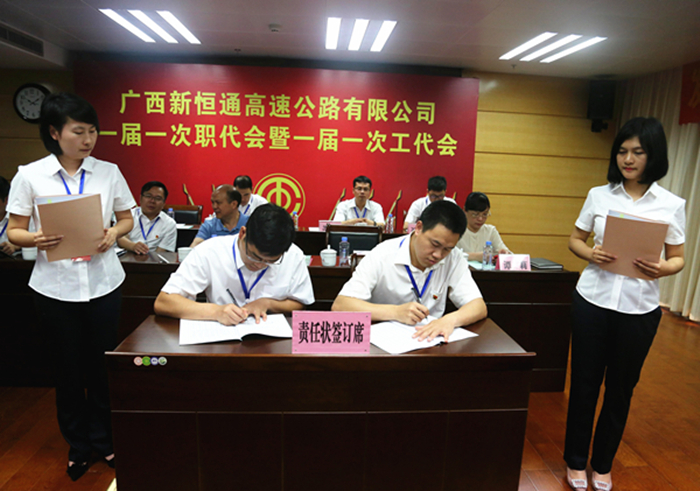 會上,公司黨委書記、董事長賴水平與各指揮部負(fù)責(zé)人簽訂了2018年度目標(biāo)責(zé)任狀、安全生產(chǎn)責(zé)任狀,并代表公司與工會簽訂集體合同。會議還對2017年度的先進(jìn)集體和個人進(jìn)行了表彰獎勵。
