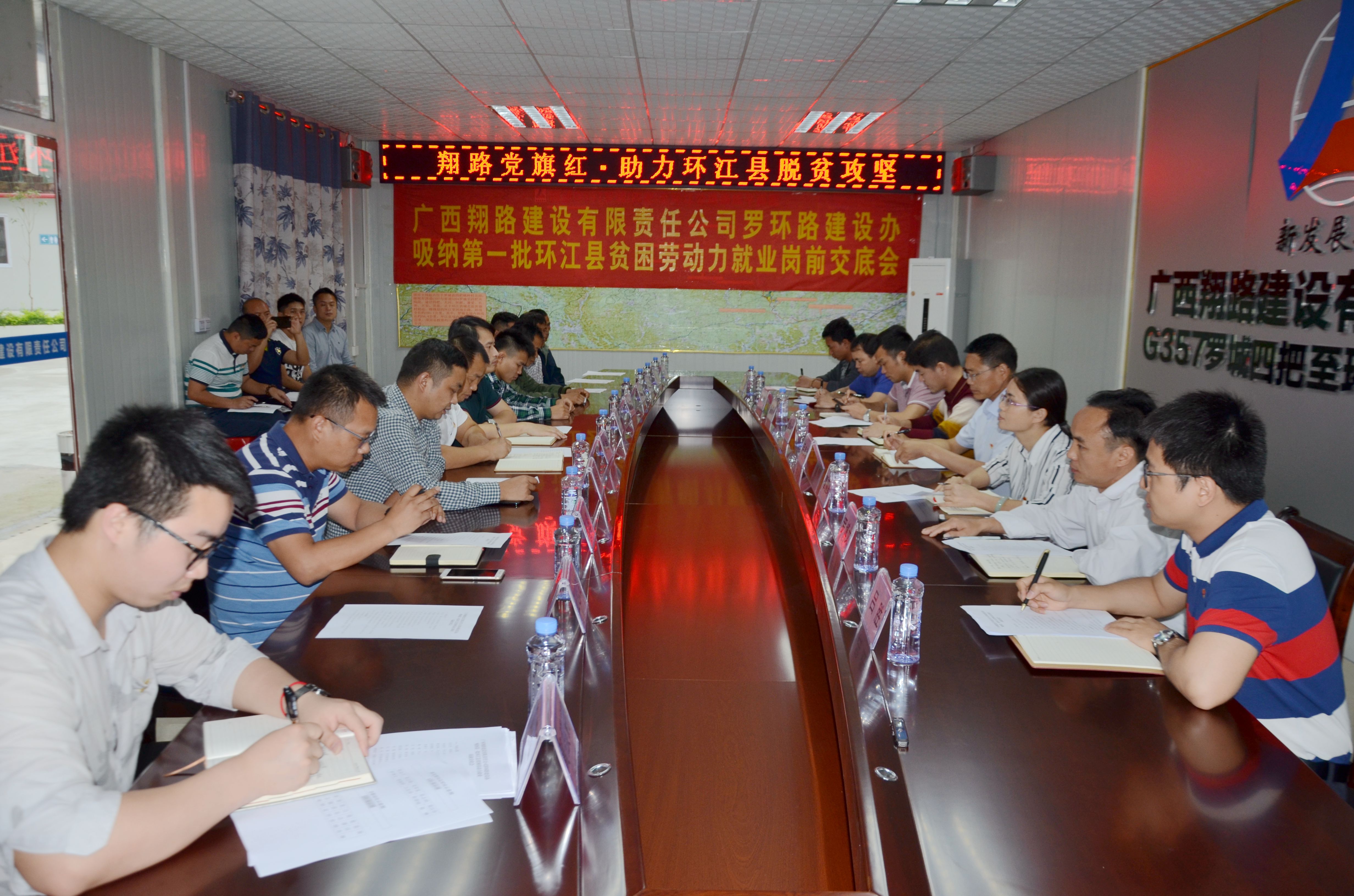 圖為翔路公司對吸納的環(huán)江貧困勞動力進(jìn)行崗前交底