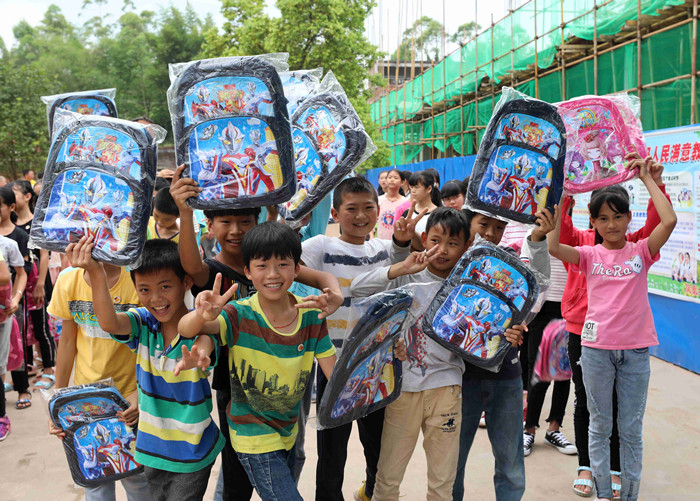 鄧少華、馮學(xué)茂等領(lǐng)導(dǎo)向受捐贈(zèng)學(xué)校捐贈(zèng)物質(zhì)。小學(xué)生接過志愿者手中嶄新、漂亮的書包,高興地舉起來,臉上洋溢著幸福的笑容。樟木林鎮(zhèn)中心小學(xué)校長葉燕作代表受贈(zèng)單位向廣西新恒通高速公路有限公司等單位表示衷心的感謝,同時(shí),他表示會(huì)不負(fù)眾望,把學(xué)校辦成社會(huì)滿意、家長放心、學(xué)生成才的學(xué)校。