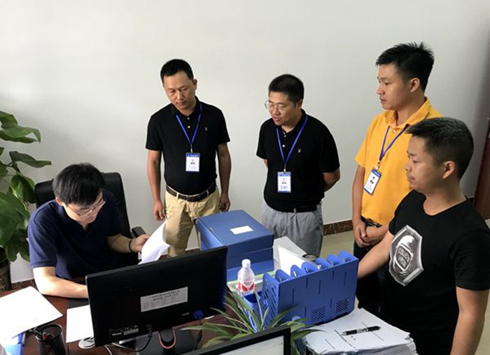 圖二:唐咸秋(右三)一行深入現(xiàn)場督察工作