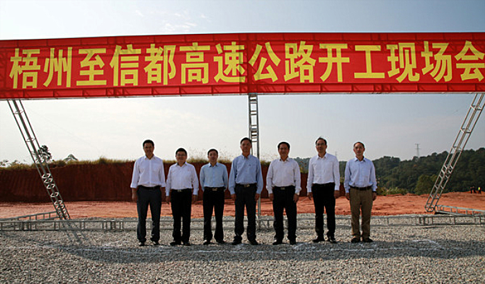 自治區(qū)交通運(yùn)輸廳巡視員李小林宣布:梧州至信都高速公路項(xiàng)目正式開工建設(shè)。