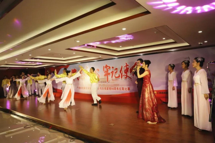 來自新發(fā)展集團(tuán)本部,各直屬單位、指揮部的11支代表隊歡聚一堂,用滿腔熱情唱響紅色旋律,歌頌黨的恩情,獻(xiàn)禮建黨98華誕。其中,新發(fā)展集團(tuán)本部吟唱余音渺渺的《愛國歌》,用現(xiàn)代舞和朗誦的形式表現(xiàn)個人與祖國血脈相連、風(fēng)雨同當(dāng)?shù)那殂?,最終拔得頭籌;欽北改擴(kuò)建指揮部、人防設(shè)計院緊緊結(jié)合“不忘初心、牢記使命”主題教育的根本遵循,分別合唱《不忘初心》《走向復(fù)興》兩首曲目,并做到演唱連貫、節(jié)奏鮮明、情緒準(zhǔn)確,分別獲得二等獎;大浦公司、融河高速指揮部、鐘昭高速指揮部則在確保歌曲的完整度、準(zhǔn)確度、協(xié)調(diào)度的同時,在服裝、隊形、伴奏上別出心裁,最終獲得三等獎;其余隊伍也各具特色,使所選紅歌綻放出燦爛的光彩,展現(xiàn)出新發(fā)展集團(tuán)奮斗拼搏的精神面貌。