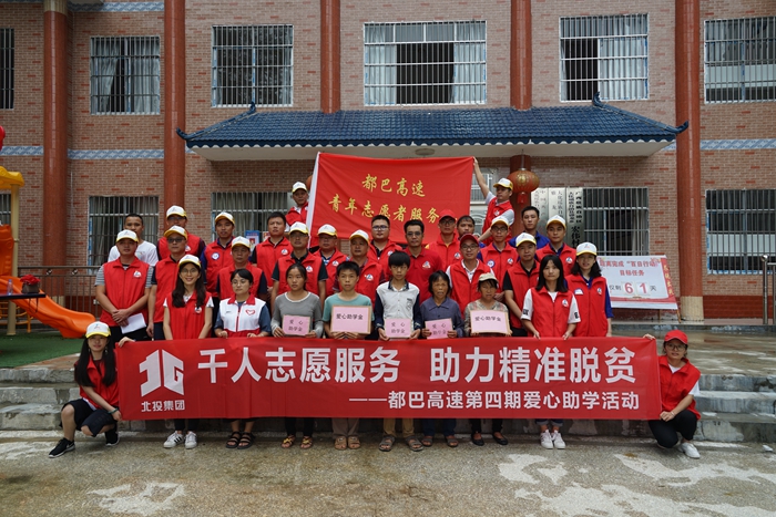 脫貧攻堅,教育為先。為幫助深山里的瑤鄉(xiāng)脫貧,8月27日,都巴高速在集團公司“千人志愿”活動的號召下,開展第四期“助力脫貧•愛心助學”活動,110名青年志愿者為貧困學子捐資慰問品、助學金共27371元,用實實在在的行動為沿線群眾服務解難題,進一步豐富“區(qū)市共建”內涵。