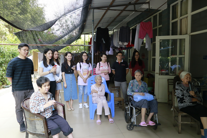 志愿者們圍坐在老人旁邊,詢問他們的生活情況、身體情況,叮囑他們注意保暖、保重身體,傾聽他們的人生故事和叮嚀告誡,并為給他們唱紅歌、讀故事、講新聞,豐富他們的精神生活。老人們對志愿者的到來感到十分高興,和志愿者一起合唱《團結(jié)就是力量》、《歌唱祖國》、《沒有共產(chǎn)黨就沒有新中國》等歌曲。護老院處處洋溢著歡樂的氣氛,老人們的臉上洋溢著幸福。